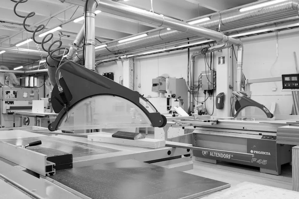 Our 1,000 m² production facility in the Helsinki area unites three core disciplines: woodworking, metalwork, and painting studio. All under one roof. Purpose-built for bespoke projects, the factory combines advanced technology with skilled craftsmanship to deliver exceptional, long-lasting results.